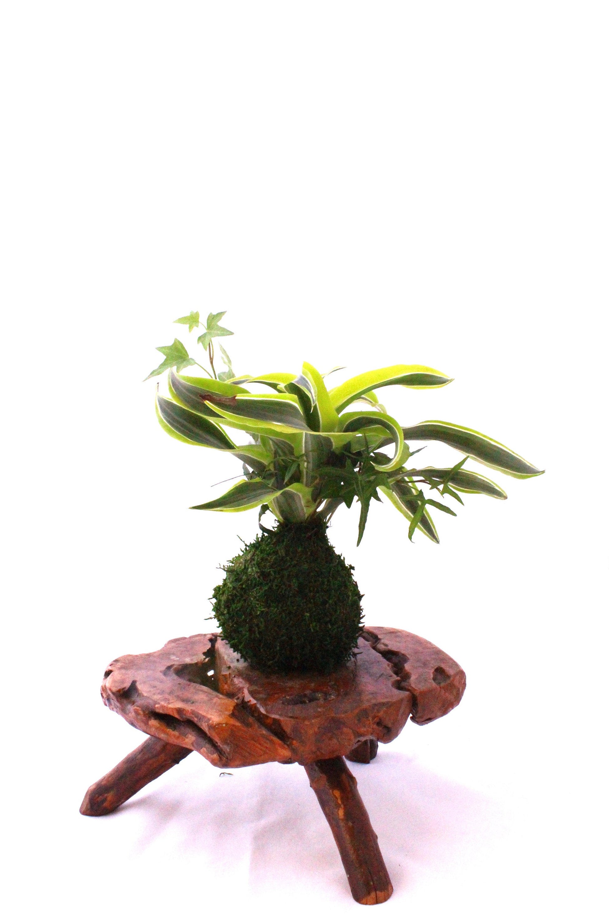 Arranged Kokedama with Lemon Lime Warneckii Dracaena and Ivy Kokedama, Japanese botanical art!