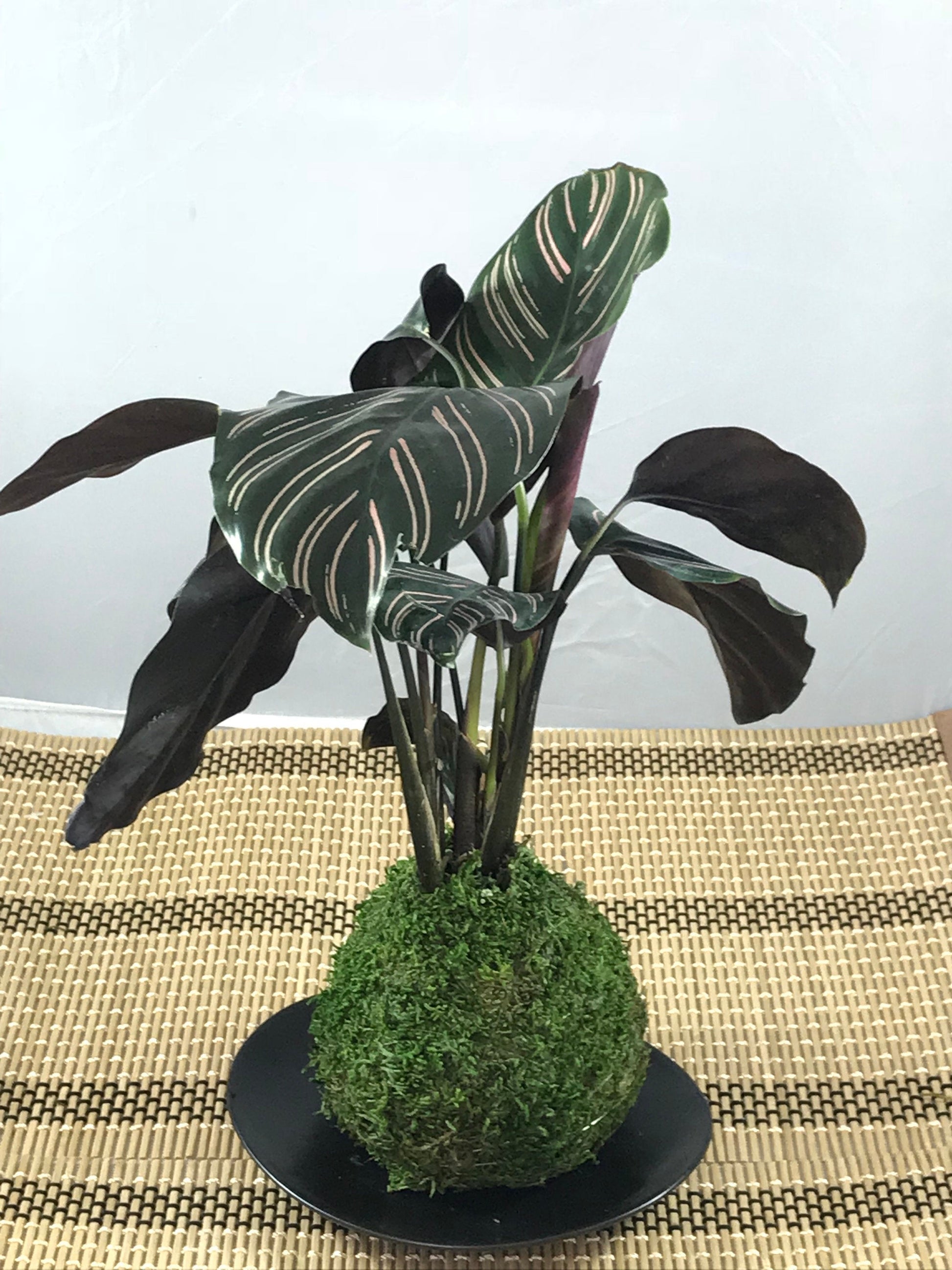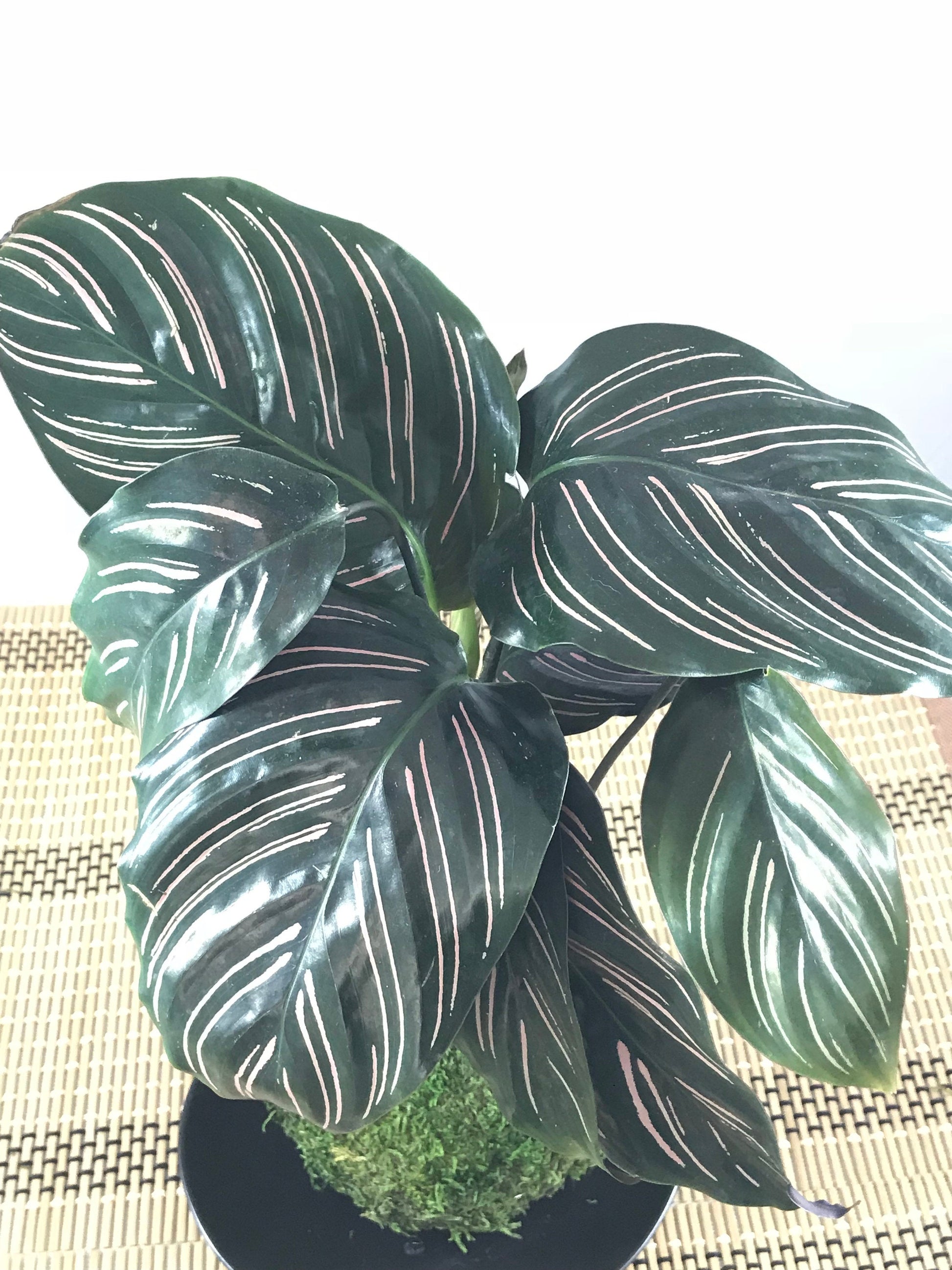 Calathea Pin - Stripped Ornata Starter Plant Kokedama - Bonsai Moss ball - house decor with Japanese technique plants!