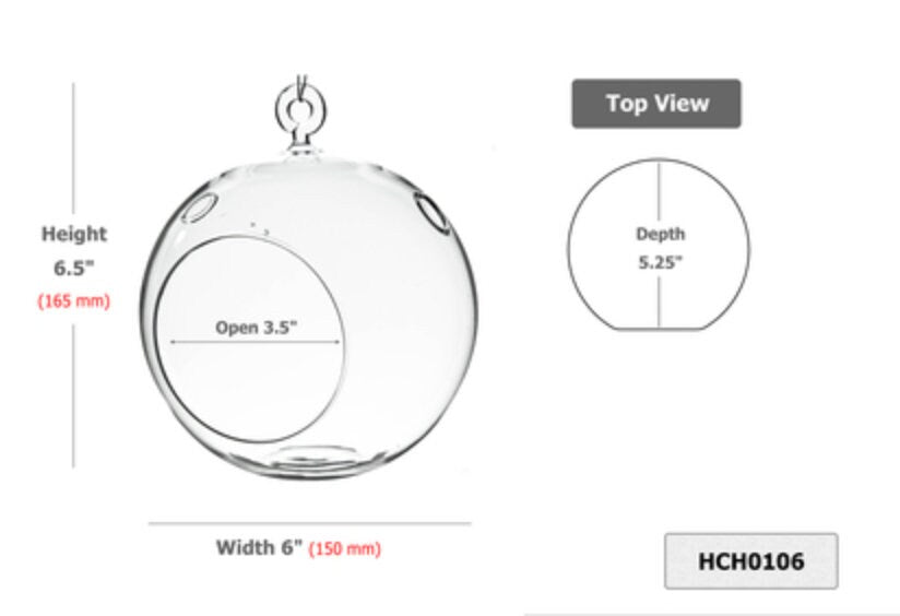 Clear Round Hanging Terrarium Globe 6" HCH0106
