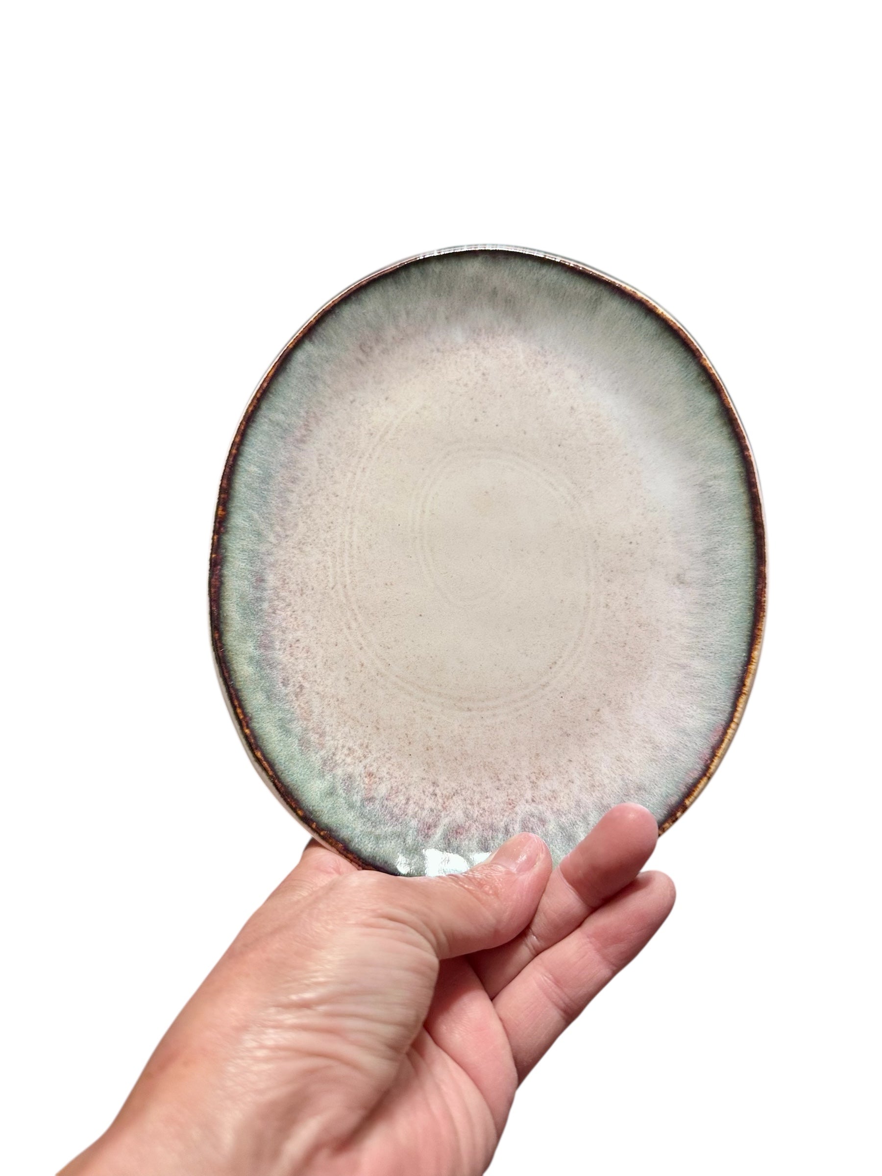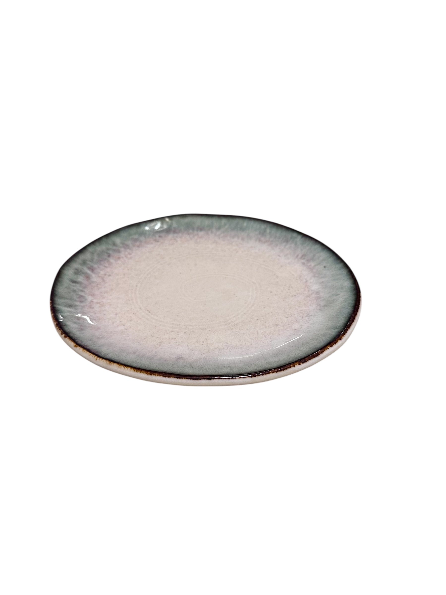 Ocean Mist Ceramic Dish – Flat Kokedama Tray (7")