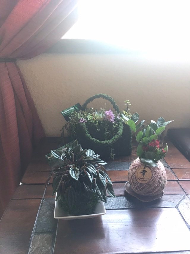 ♥Kokedama (Ko Kay Da Ma) is an arranged plant that grows from a ball of covered soil moss. Moss will keep moisture the soil and plant will be green and healthy.