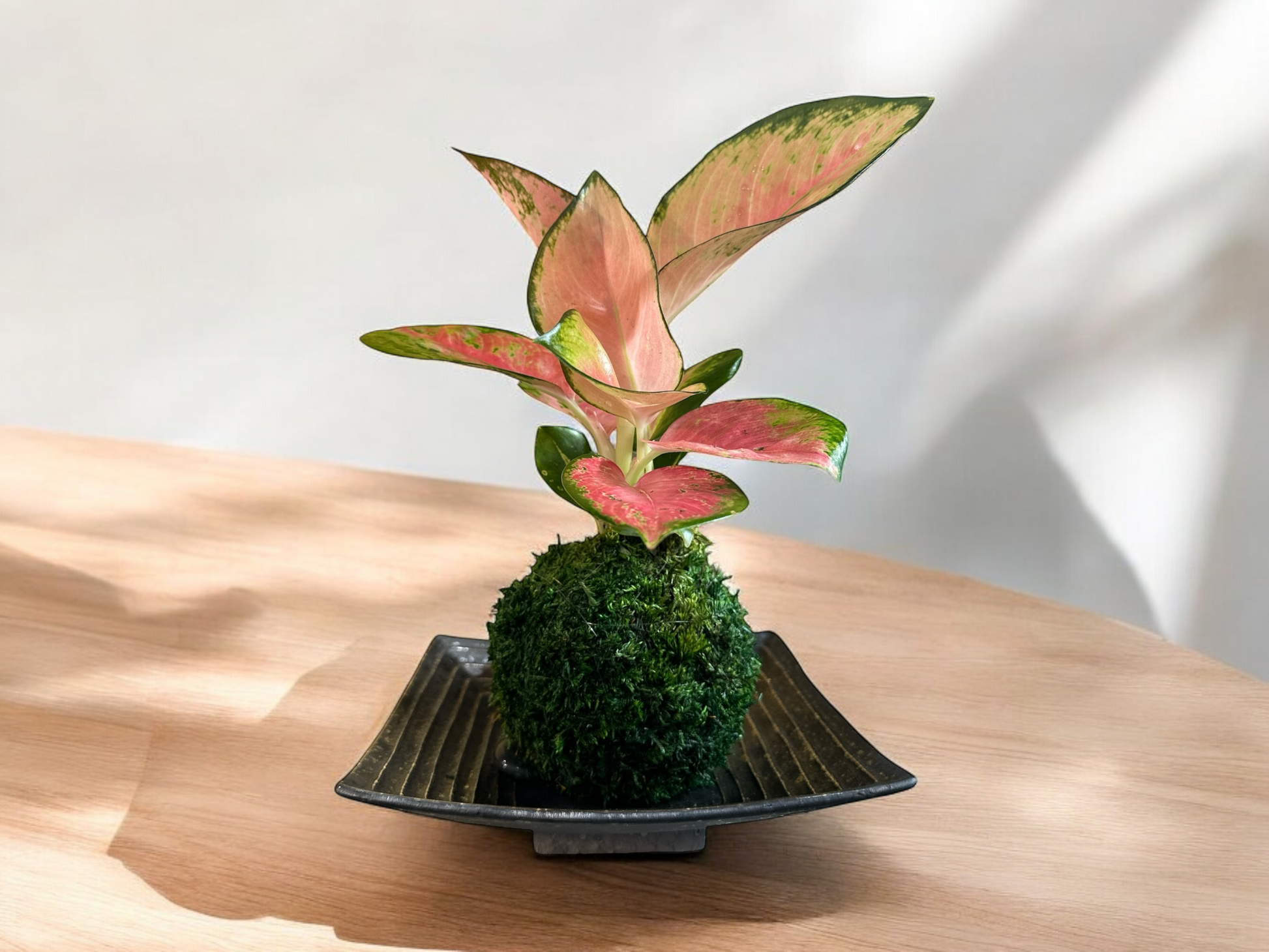 The Pink Aglaonema Kokedama is a stylish and low-maintenance plant display that combines the beauty of the vibrant Pink Aglaonema with the ancient Japanese art of Kokedama. Featuring lush, variegated leaves with shades of pink, green, and cream, this ornamental plant sits in a unique moss ball, acting as both a pot and a living planter. Ideal for minimalistic or modern interiors, the Pink Aglaonema Kokedama is perfect for tabletops, shelves, or hanging displays. Easy to care for, it thrives in indirect light and adds a splash of color and elegance to any space.
