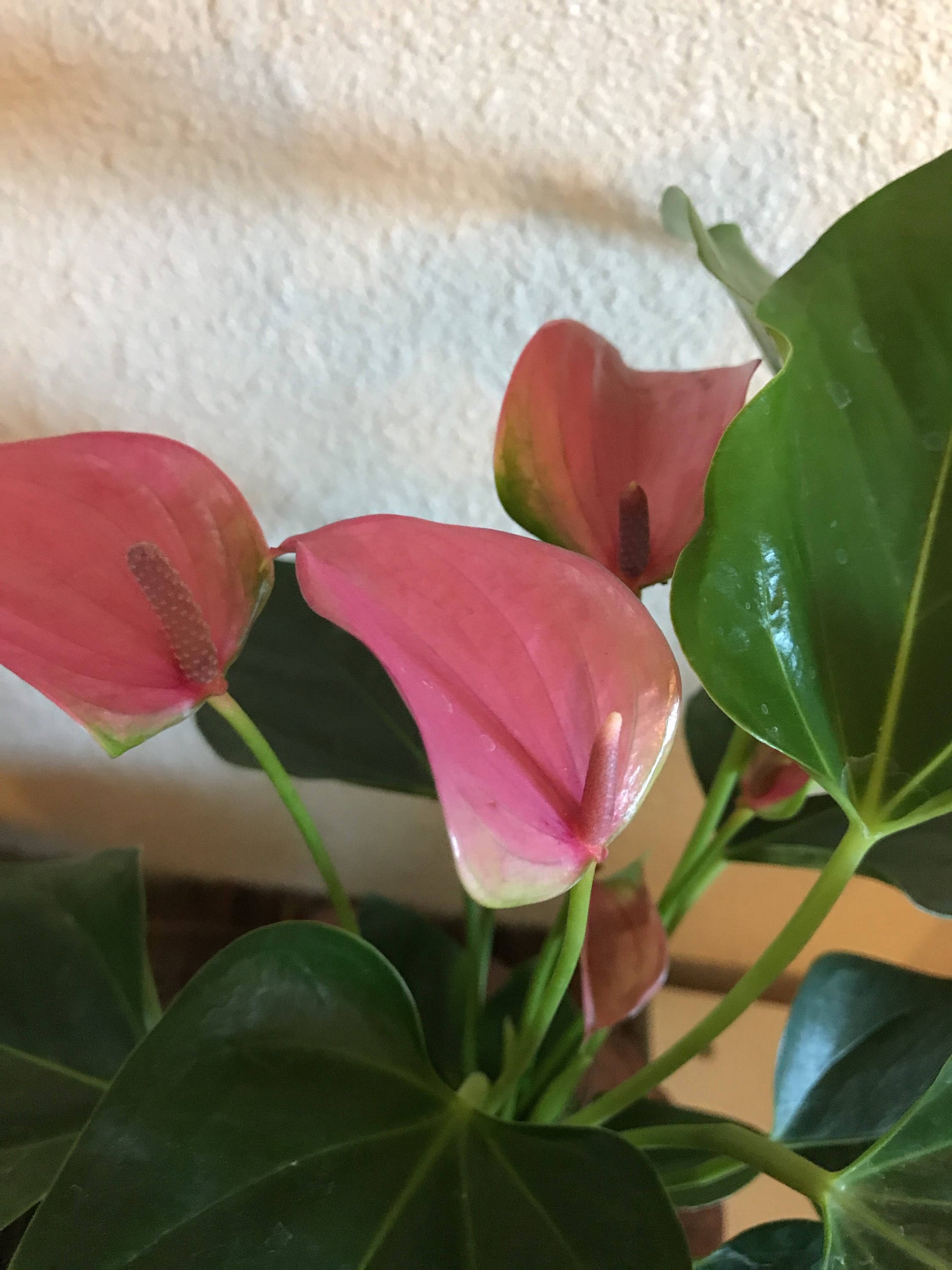 ♥This is a live Pink Anthurium plant that is potted in a proper mixture of soil and wrapped with moss to help in growth and plant life. Anthurium like bright indirect light and moisture side.