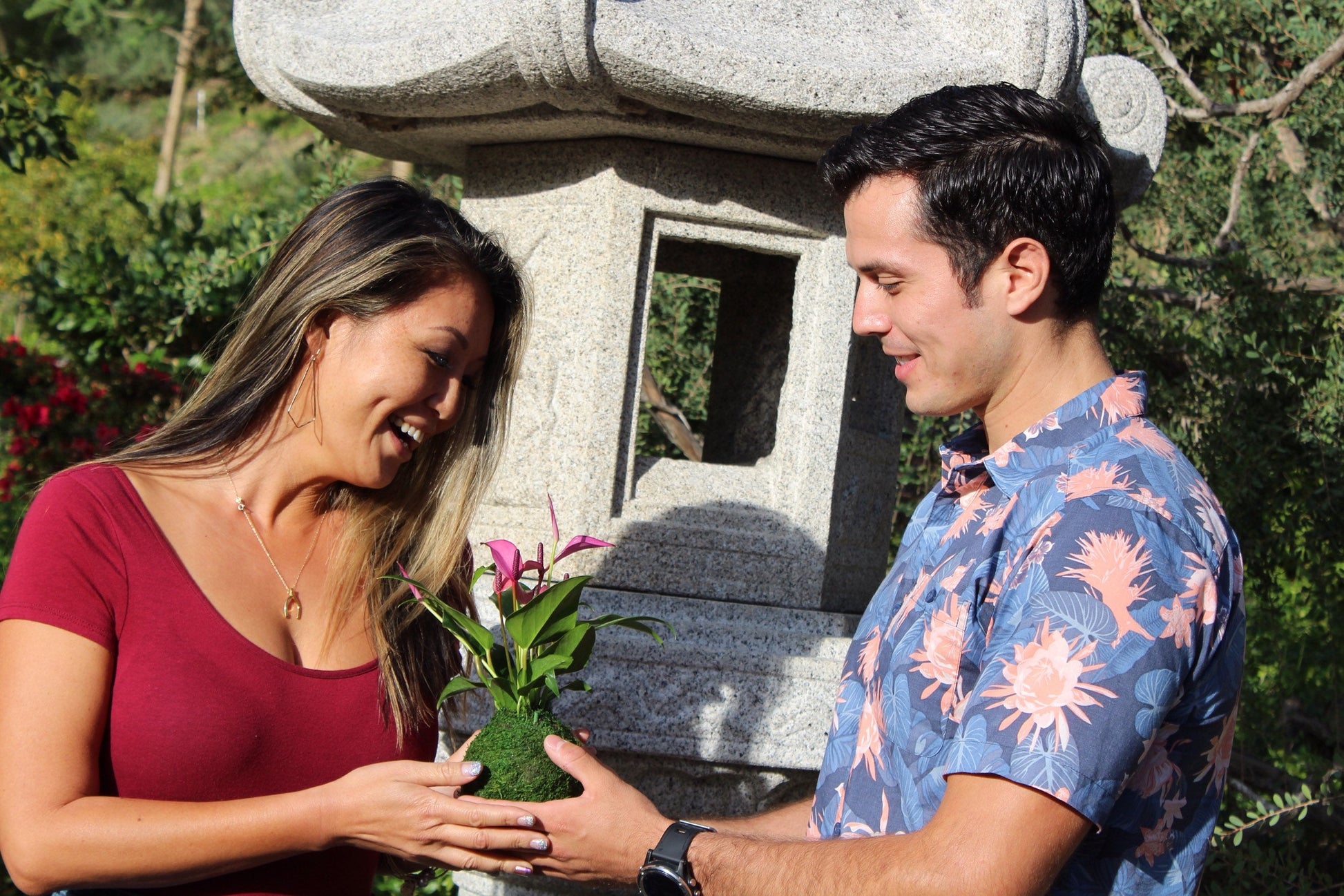 This is a stunning Pink (purple) Anthrium Kokedama - Bonsai Moss Ball, anthrium, beautiful soft purple kokedama that is potted in a proper mixture of soil and wrapped with moss to help in growth and plant life. Size 4 x 4 x 12 inch tall (It is growing, it may be taller than this, you can cut and arrange as you like.) The care instruction will be included in the package.