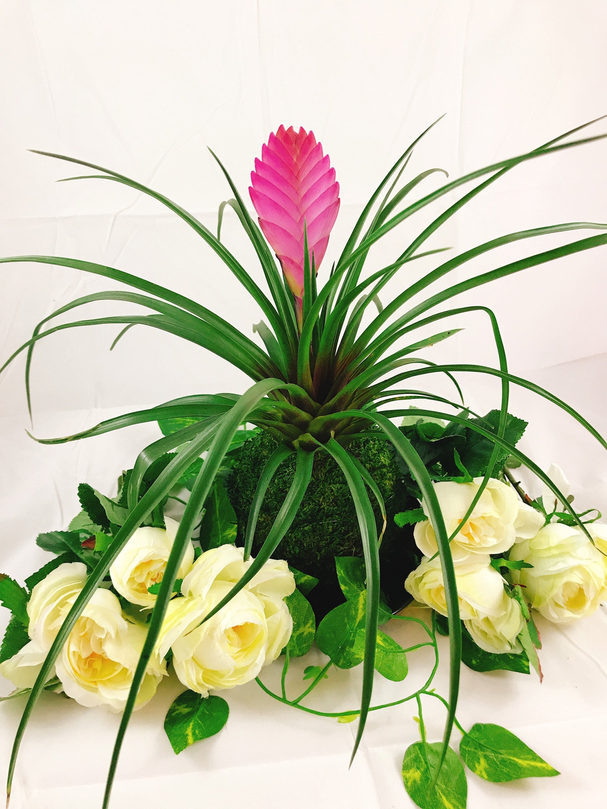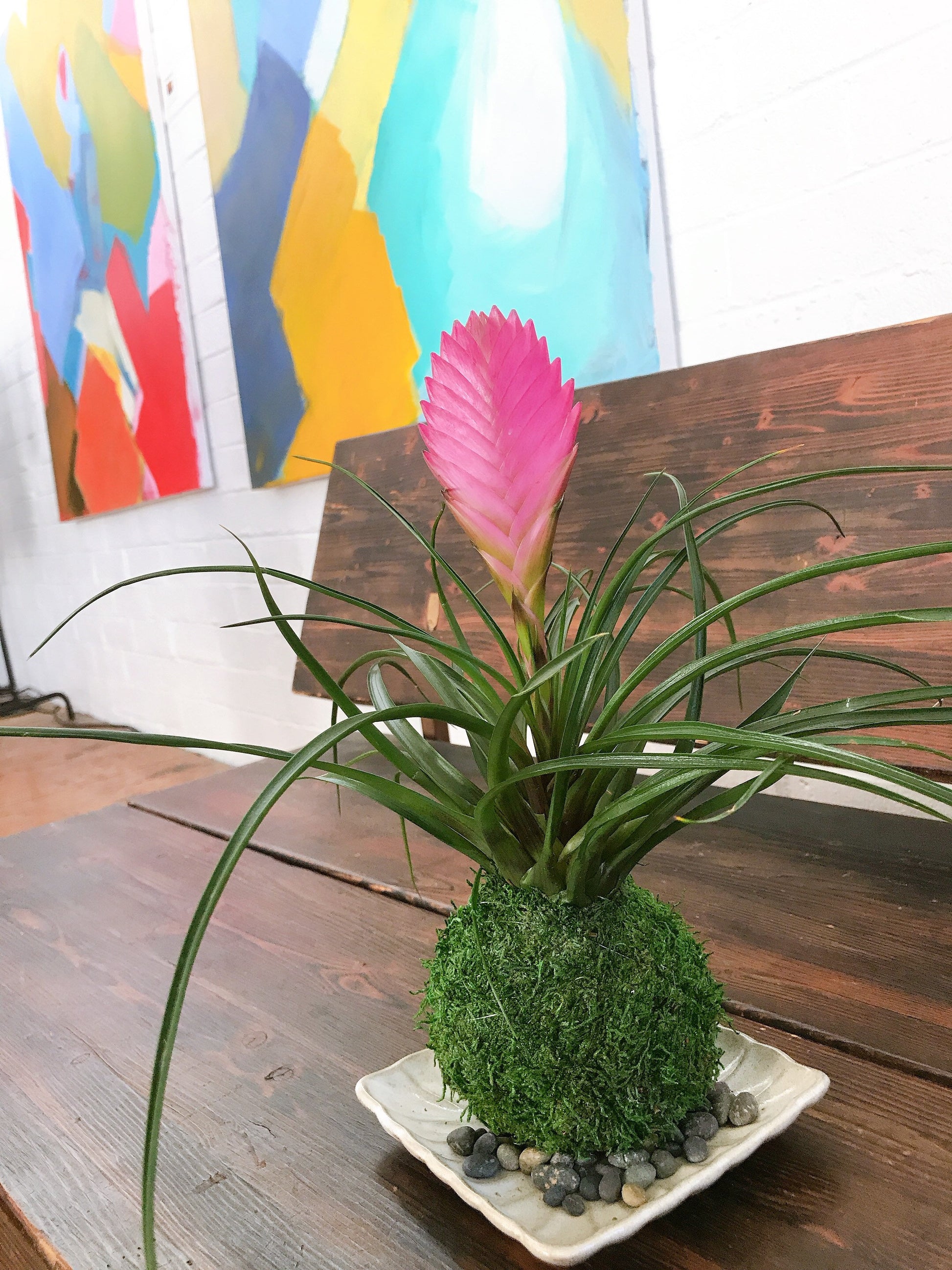 Pink Quill, Tillandsia cyanea Kokedama - Moss ball with stunning Pink Quill plant. Great gift for any occasion!