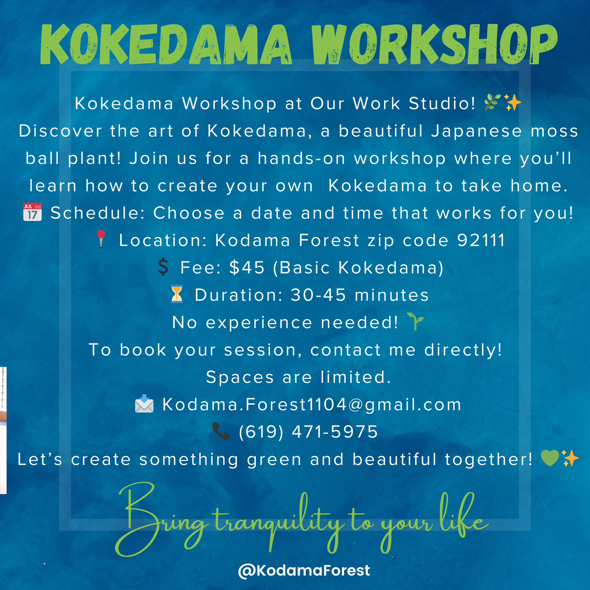 💲 Fee: $90 for two person (Basic Kokedama).