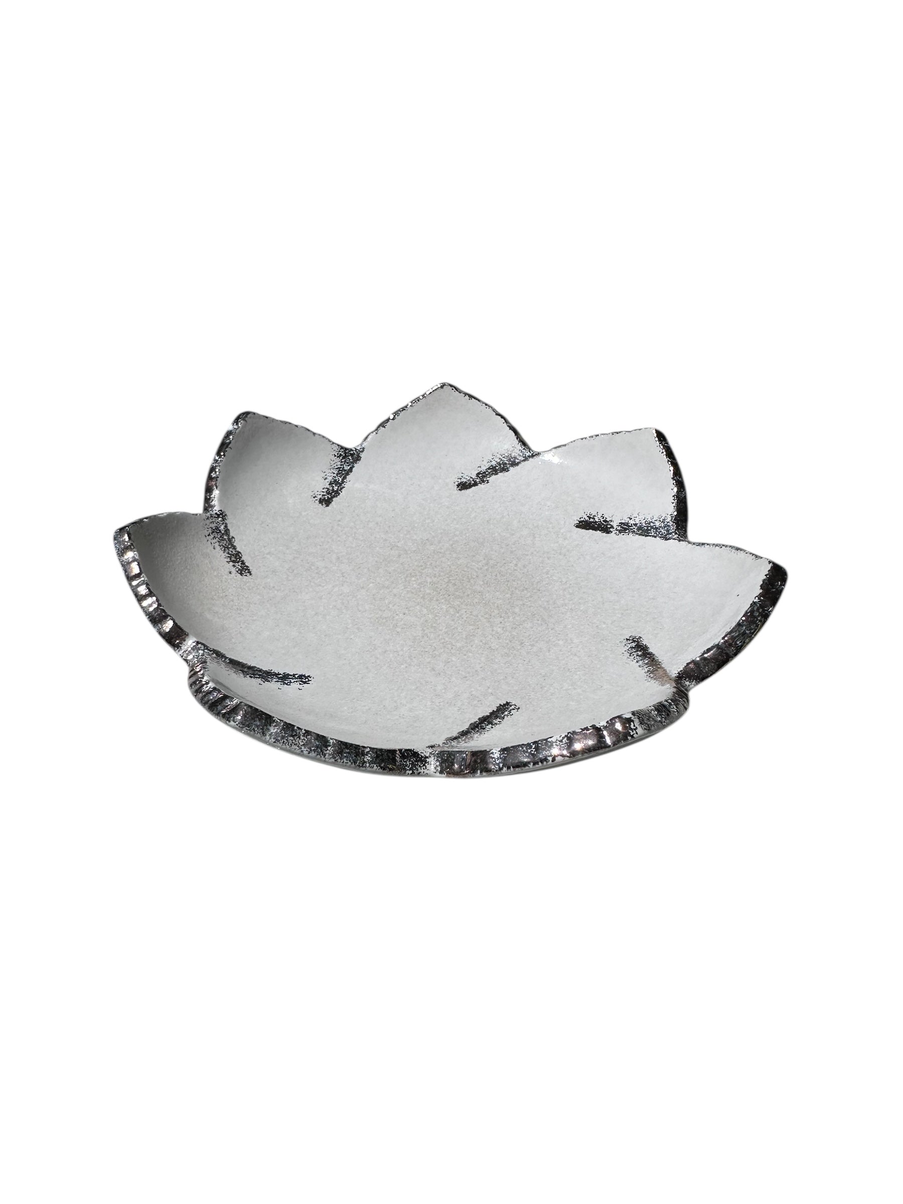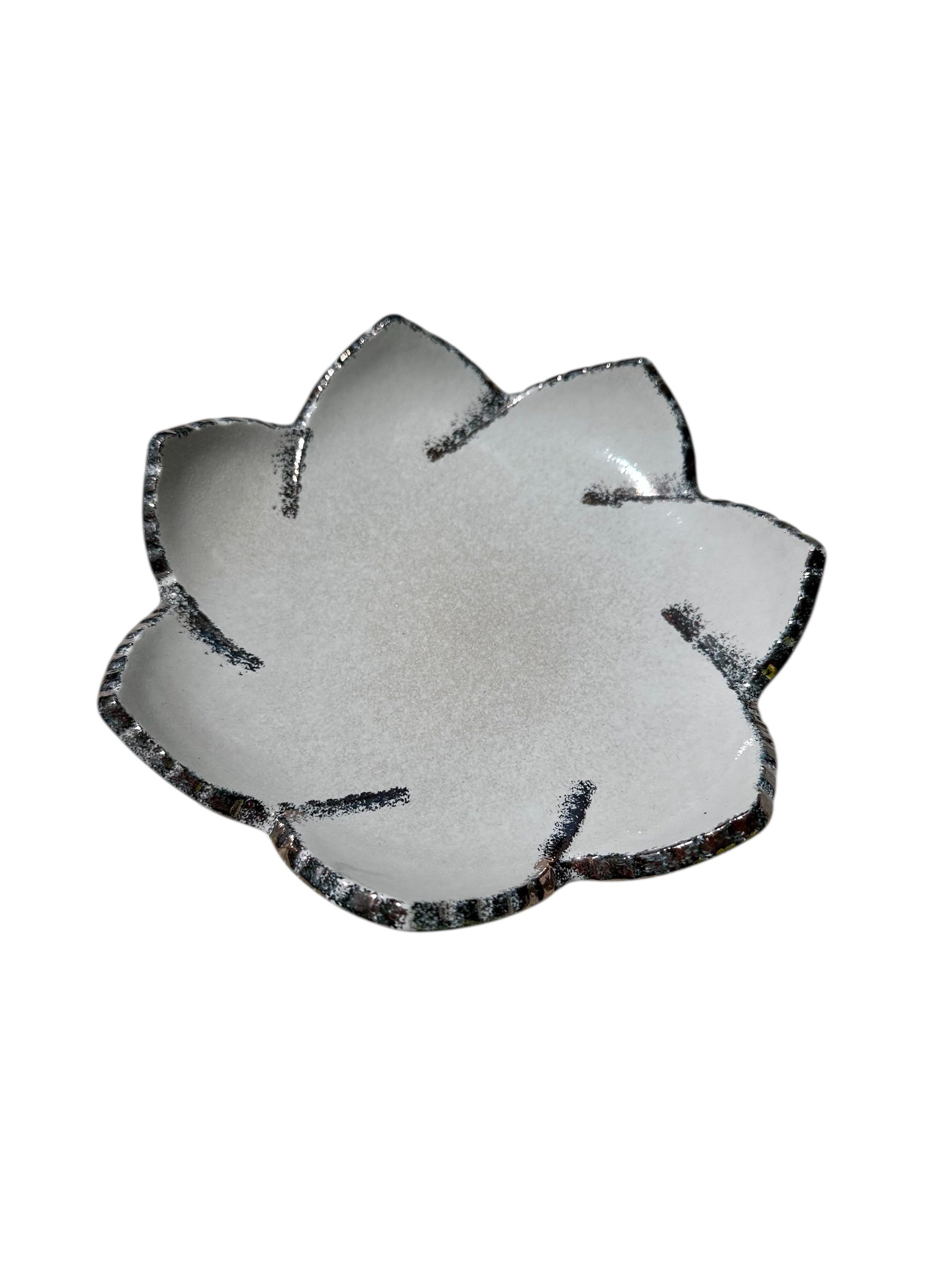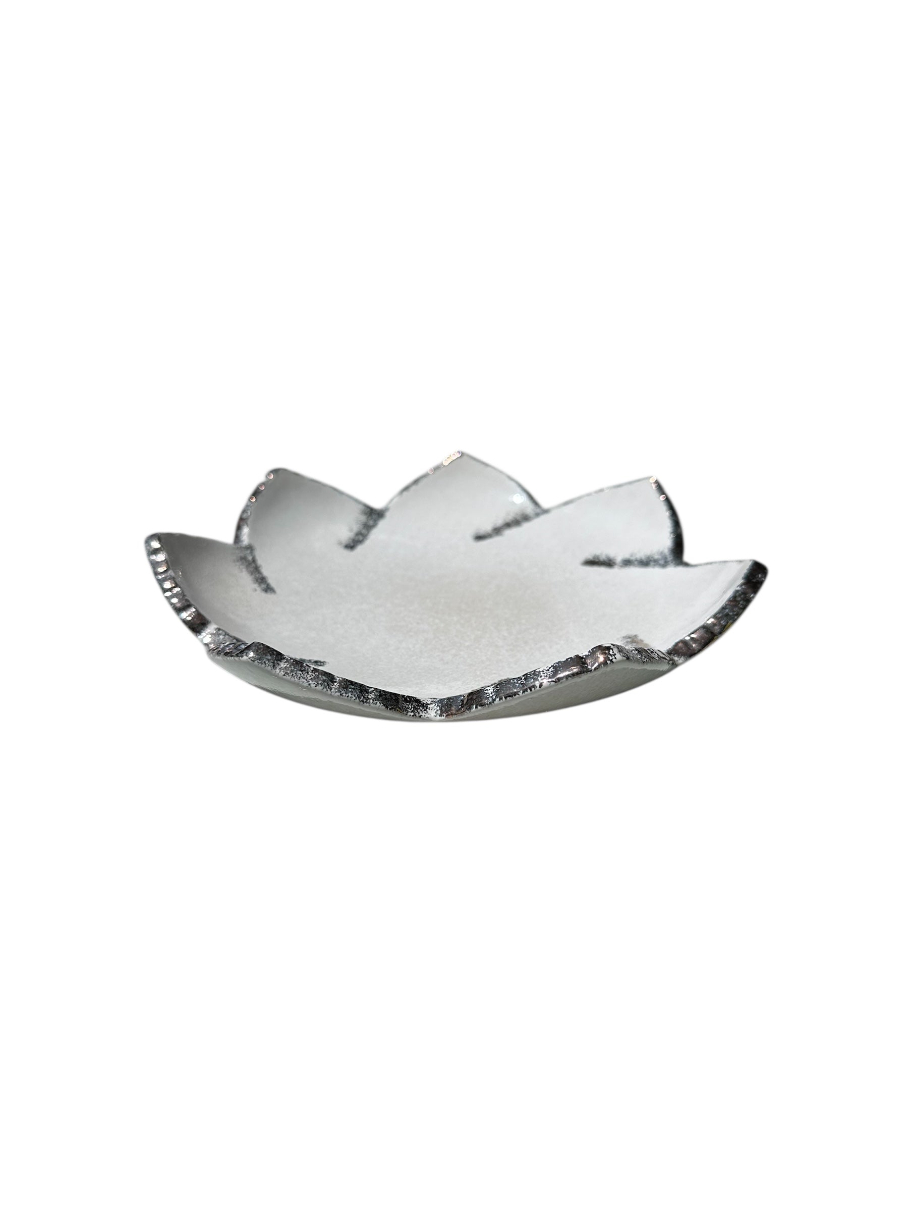 Add a serene and sophisticated touch to your space with this white lotus-inspired ceramic plate, beautifully crafted with delicate petal edges and finished with a striking gold-accented rim. Measuring 7 inches wide, this versatile piece is perfect for displaying your favorite Kokedama, candles, or as a small serving tray for treats or trinkets.