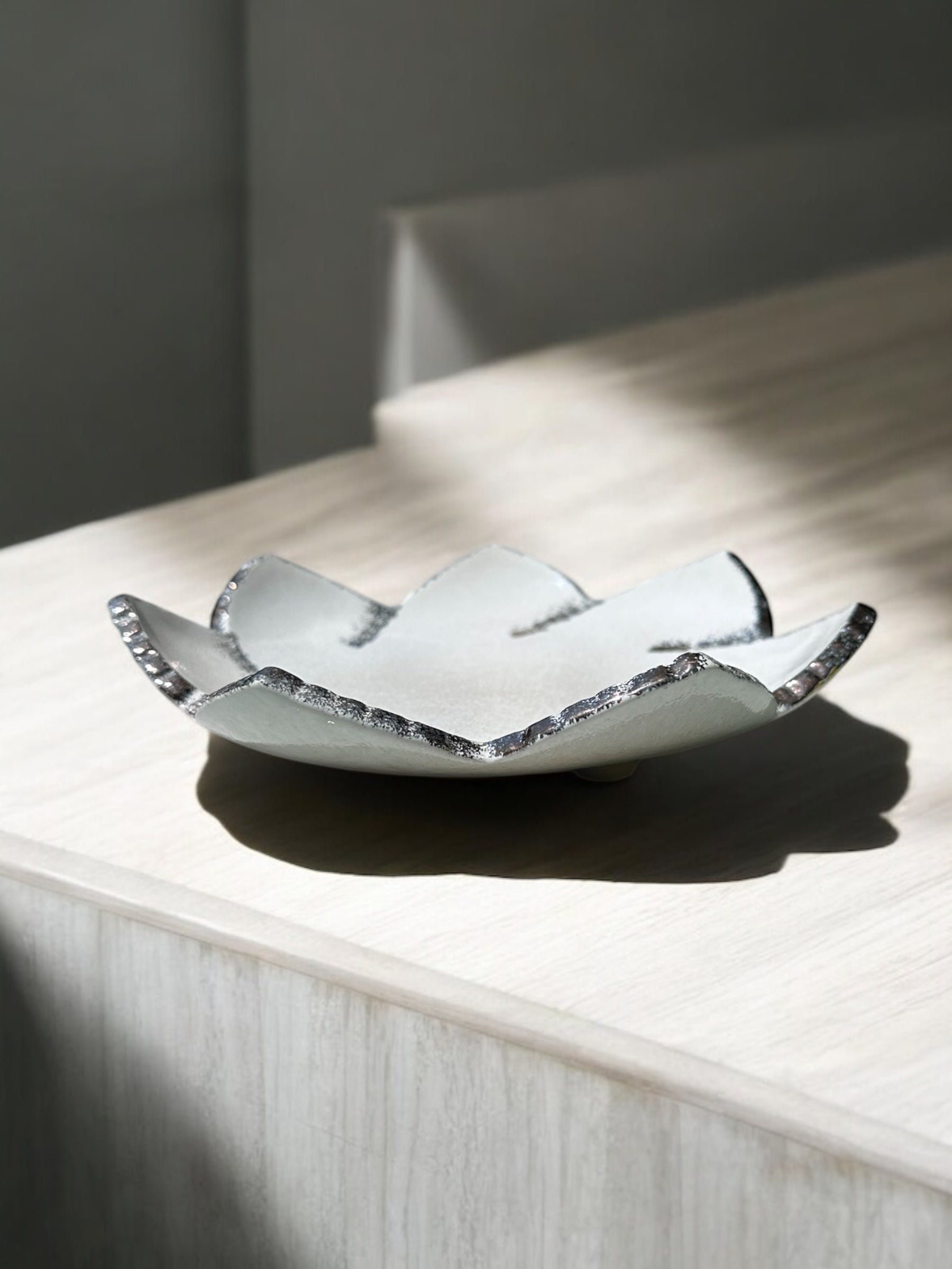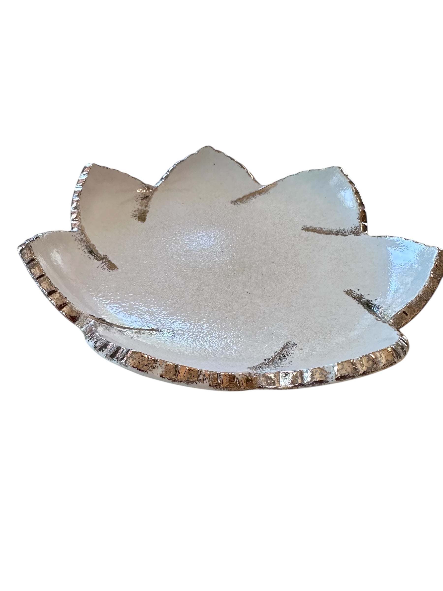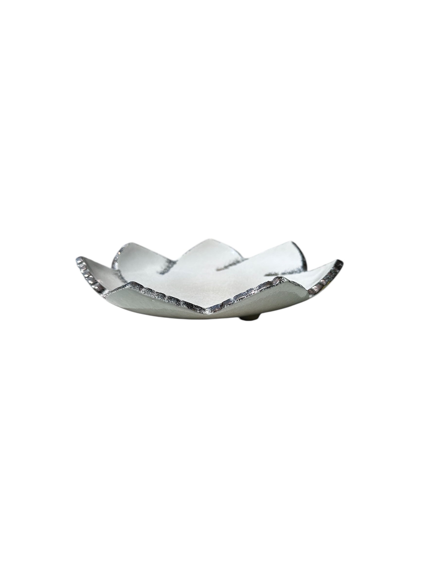 Add a serene and sophisticated touch to your space with this white lotus-inspired ceramic plate, beautifully crafted with delicate petal edges and finished with a striking gold-accented rim. Measuring 7 inches wide, this versatile piece is perfect for displaying your favorite Kokedama, candles, or as a small serving tray for treats or trinkets.
