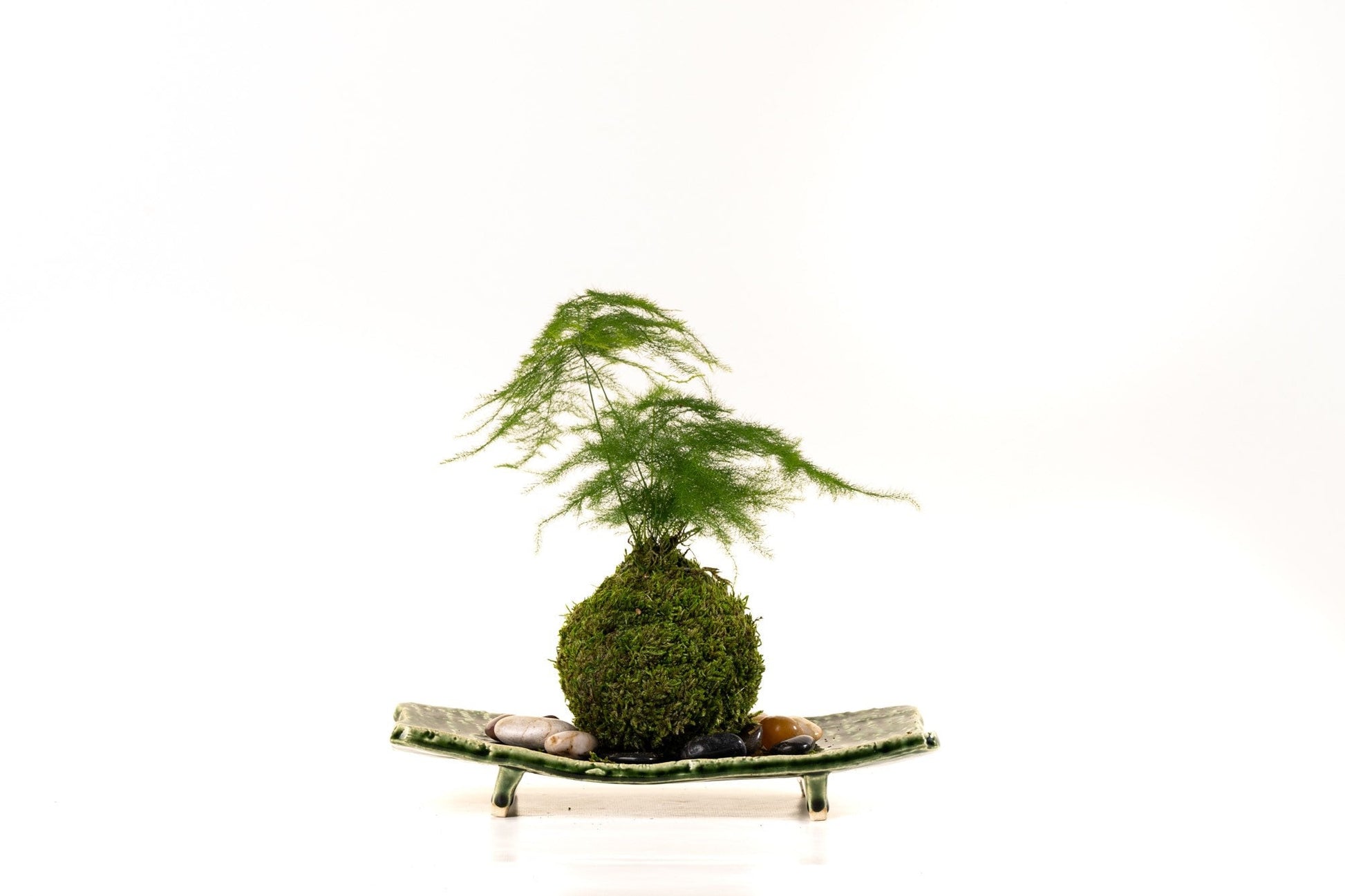 Asparagus Ferns grow best in bright, indirect light without any full sun. Direct, hot sunlight can scorch the 'needles', while insufficient light will often cause them to yellow or drop. This plant loves moisture, misting frequently and give adequate moist is keys to keep plant happy. You can chose kokedama plant only or with dish.Dish will be the seller's choice.