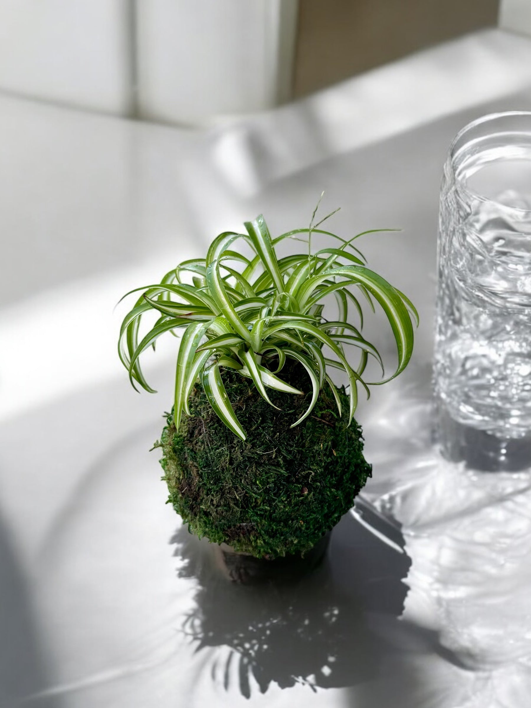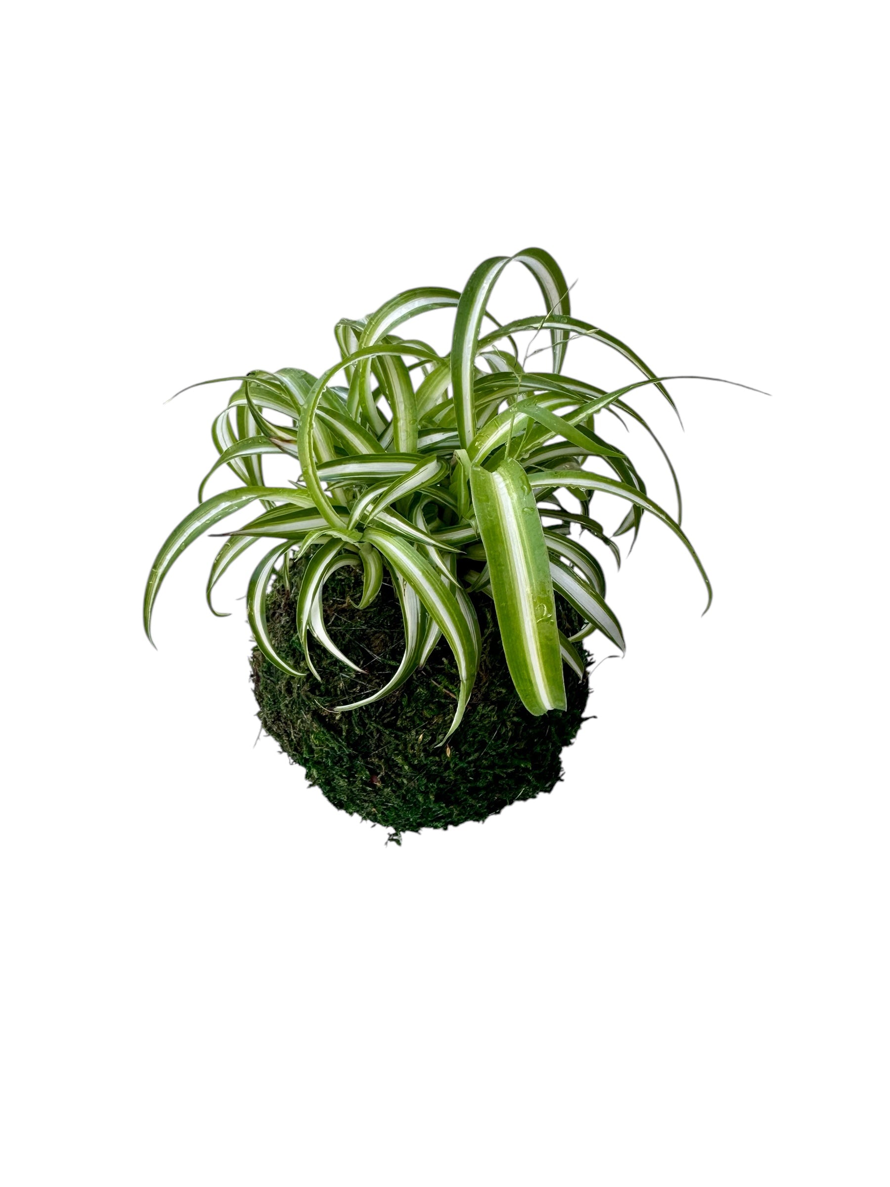 Spider plant (Chlorophytum comosum) Kokedama - Moss ball, One of NASA’s ‘Top Clean Air Plants!