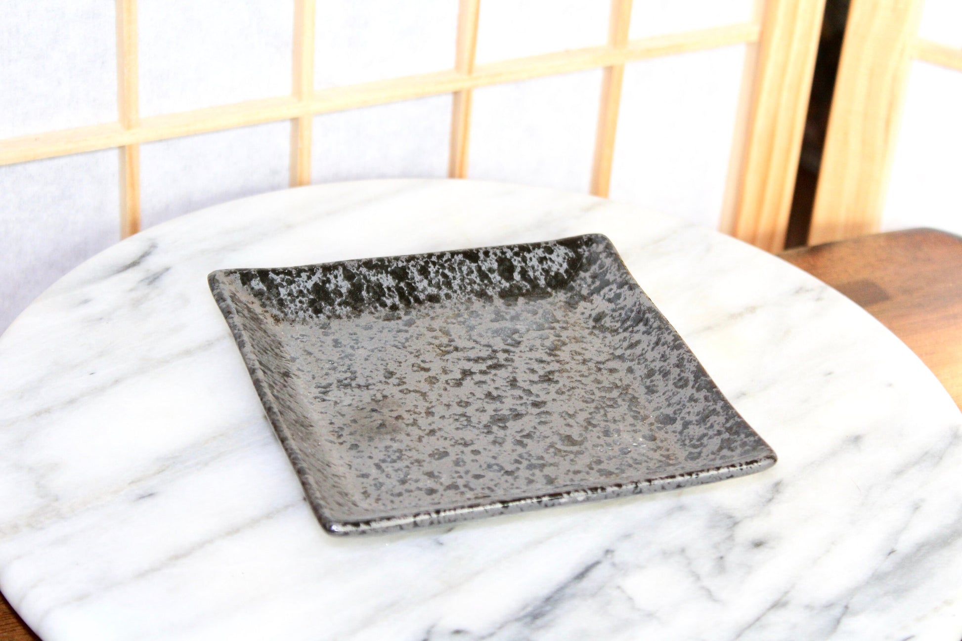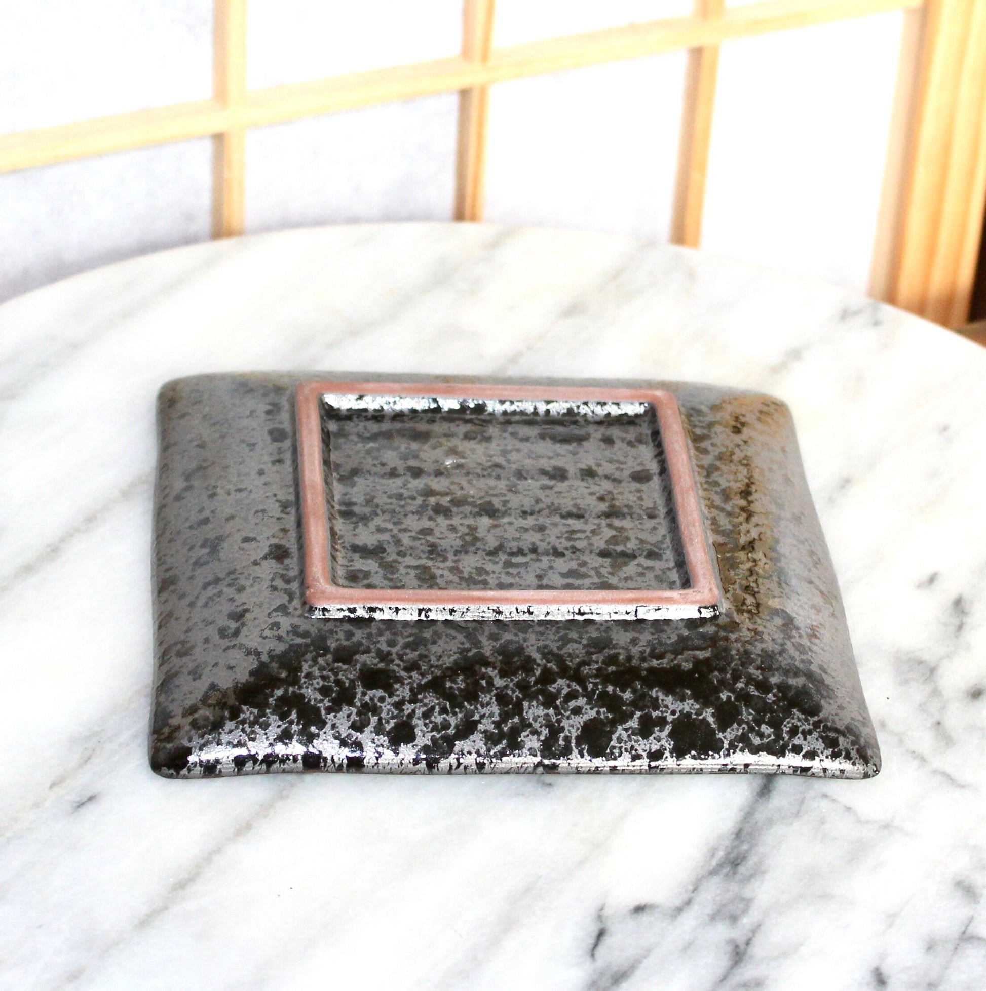 Square black grazed saucer for Small to Medium Kokedama