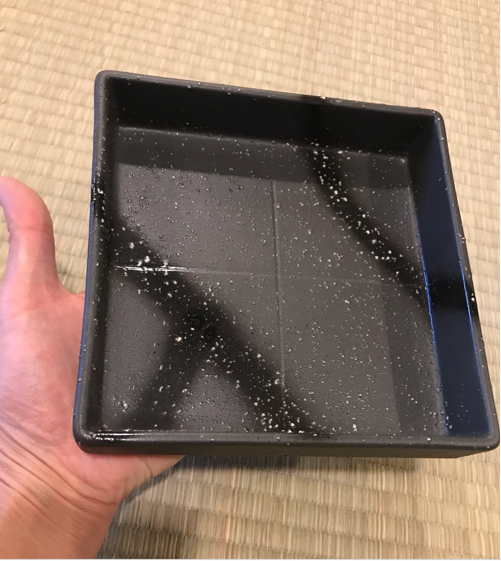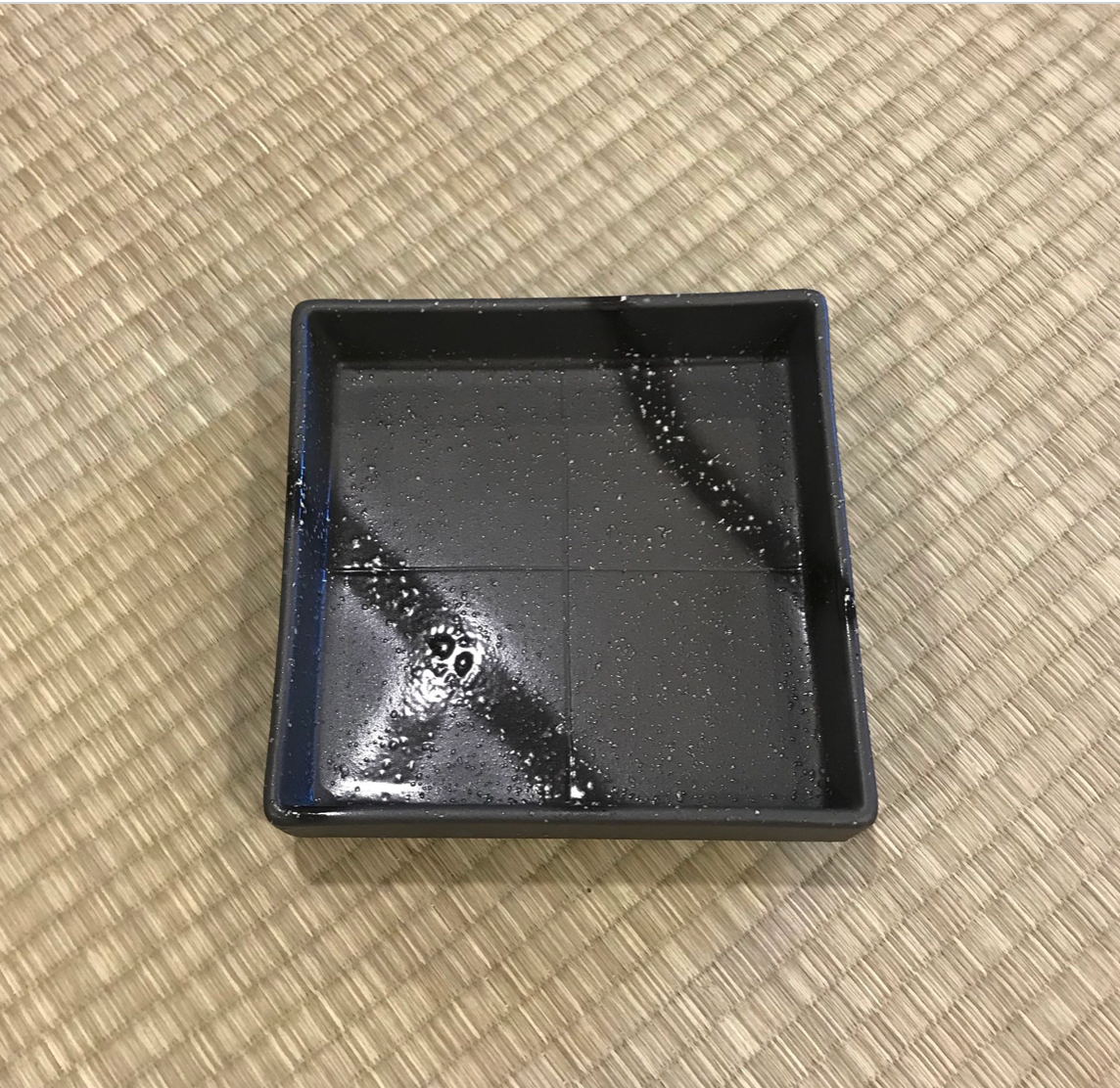 Square grazed design ceramic Saucers for Medium Kokedama. 5.5" diameter, 1.3" deep.