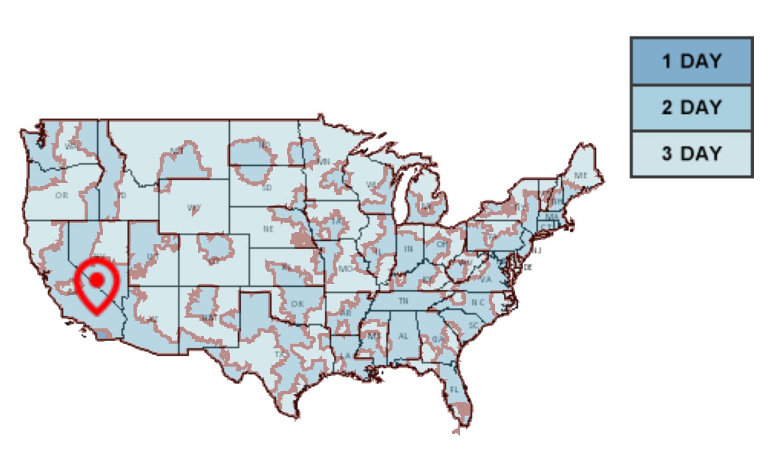 Please check the map picture how long is the transit time to your place. I will ship out from zip code 92111.